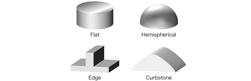 DOT impact testing only includes flat and hemispheric anvils. ECE differs from DOT with its use of curbstone anvils, but flat and sloping anvils are now utilized under ECE 22.06. Snell testing features flat, hemispheric, and edge anvils. Edge anvils feature the most aggressive profile, as strike force (per square inch) increases by up to 80 percent due to the smaller surface area. Honda image.