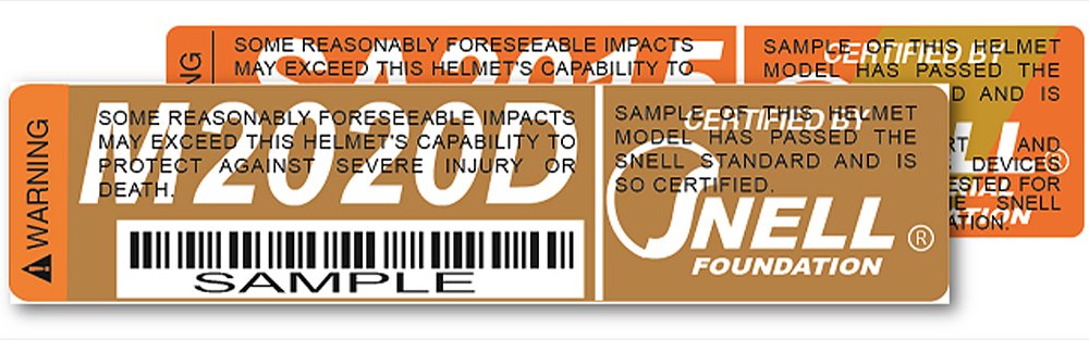Snell-approved helmets not only bear the organization’s stamp of approval but also contain a branded sticker and barcode on the inside. Alternatively, customers can refer to the company’s website for a list of all Snell-certified helmet models. Snell photo.