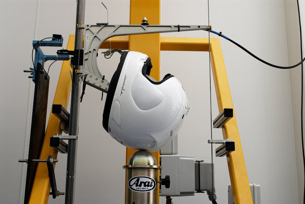 Helmet manufacturers like Arai rigorously test products in-house before submitting samples for DOT, ECE, or Snell approval. Honda photo.