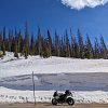 The next two long days, I traversed the Great Plains, despite the fact that every time I've ridden across them my resolution at the end has been "never again." Finally, Colorado, and my opportunity to check off the last couple mountain passes I missed on my previous trip. Last year I headed north into Montana and Idaho, so this year I turned south, to explore the desert. Every day brought a new revelation of heartrending scenery, from the bleak serenity of northwestern Arizona to the alien pillars of Sedona and Zion. I visited the Grand Canyon for the first time, rode for hours along an orange sea of desert wildflowers, and scraped a knee on I-15 down the Virgin River Gorge, which the feds blasted out of the Colorado Plateau at a cost of $75 million per mile, perhaps in response to the question "can an interstate be art?"