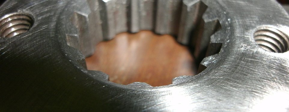 In the foreground is an "R" sprocket. The measly "L" piece is to the rear. It's not just the angle: that front sprocket is over 5 mm wider in the splined area. Photo by Lemmy.