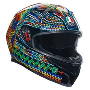 The K3 is an icon in AGV's helmet lineup and in their pursuit for perfection they've raised the bar yet again. You'll slice through the air with ease no matter how you ride thanks to the aggressively styled shell designed to maximize aerodynamic performance and optimized for stability in all riding positions. Three different shell sizes house a plush, quick-drying and thoughtfully constructed interior so you can ride comfortably. With a massive field of view, anti-fog Pinlock lens equipped face shield and drop down sun shield you'll be able to keep your eyes on the road ahead with ease in any weather condition. The K3 helmet from AGV is a shining example of premium comfort and top level safety packaged in an aggressively styled and affordable package.