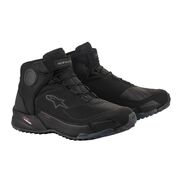 The CR-X Drystar Riding Shoe is a waterproof shoe with a "leg up" on comfort. This protective riding shoe is equally adept at spending entire days on foot as it is in the saddle. Alpinestars' proprietary Drystar waterproof membrane repels water while remaining breathable. TPU ankle protectors, a reinforced shank and reinforced shifter panel keep the needs of the motorcyclist prioritized. The CR-X boasts an outsole design and inner bootie systems modeled after contemporary running shoes, giving a comfortable, athletic fit.