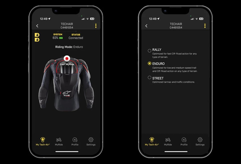 Take charge with the Tech-Air App's Bluetooth connectivity. Monitor system status, check battery levels and analyze your ride, complete with route plotting on a map. Switch effortlessly between Street, Enduro and Rally Modes using the app or built in buttons – ensuring top-tier protection for both your off-road adventures and daily commutes.