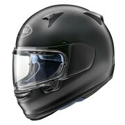 The Arai Regent-X Helmet has a 5mm wider base opening to make the helmet easier to enter and exit. The lightweight shell lets impact forces glance off. When combined with a multi-density EPS liner, the protection an Arai helmet provides is top-notch. Multiple entry and exhaust vents throughout the helmet make up Arai's Free Flow System to keep hot moist air moving out of the helmet without excessive wind noise. The top liner of the helmet is fixed in place, but the cheek pads can be removed if they ever need a washing or replacement. The Arai Regent-X Helmet delivers comfort and protection with an intermediate oval internal head shape.