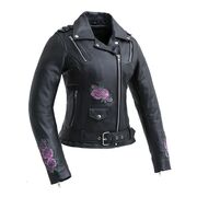 Made from Sheepskin leather, the Bloom leather jacket features a snap down lapel, collar, epaulets and an asymmetrical zipper. With armored pockets for optional armor and zippered pockets throughout, you will have plenty of room to stow away personal items.