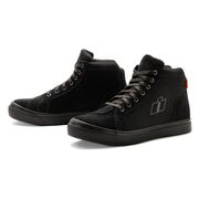 The Icon Carga CE Shoes might look like it kick-flipped out of the skatepark, but these sneaks are entirely road ready. The genuine leather upper provides real world coverage against asphalt. D3O ankle inserts reduce transmitted impact forces while the oil and slip-resistant rubber outsole ensures you stick every trick.