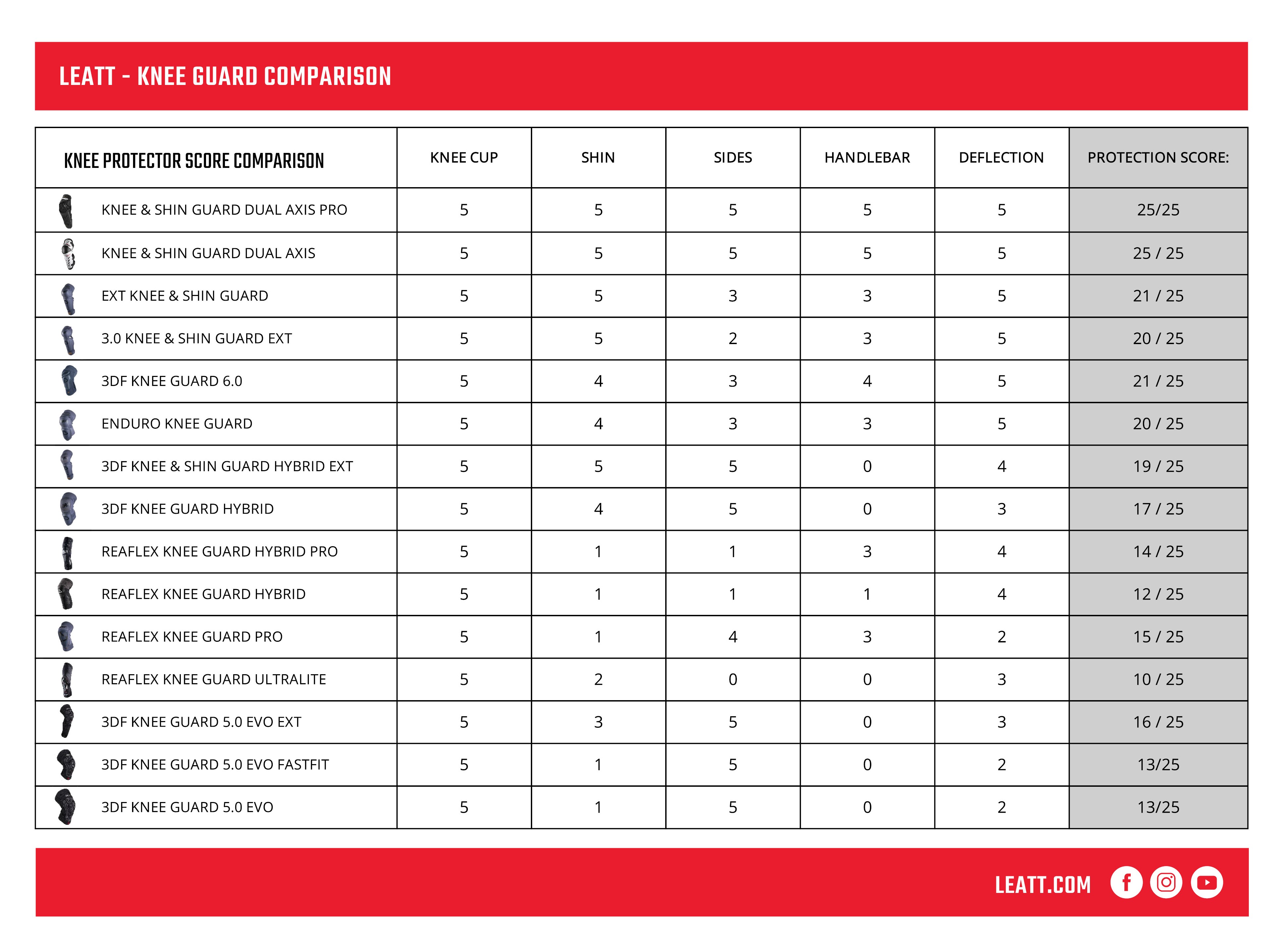 The Leatt Dual Axis Knee Guards are CE certified and score a total of 25 points on the Leatt protection rating system. The pivoting Dual Axis full hard shell knee & shin protection offers the most protection of all Leatt knee guards. They are slim which allows for a under the boot fit, lightweight, comfortable and offer great ventilation.