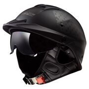 Imagine a half-shell motorcycle helmet that offers flow-through, ported ventilation to keep you cool on the hottest days. The short peak and Twin Shield System drop down sun shield will protect your eyes when the sun is in the horizon. The sun shield itself has unique, two-stage adjustability: lock it half way for just a little shade or full open for total sun protection.