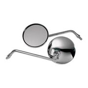 The Milwaukee Twins Universal 4" Mirror offers a timeless look with its chrome finish on a 4-inch round head, complemented by an 8-inch stem that ensures a clear field of vision. This mirror is versatile, designed to be mounted on either the left or right side of Honda, Kawasaki, and Suzuki motorcycles equipped with 10mm threaded mounts.