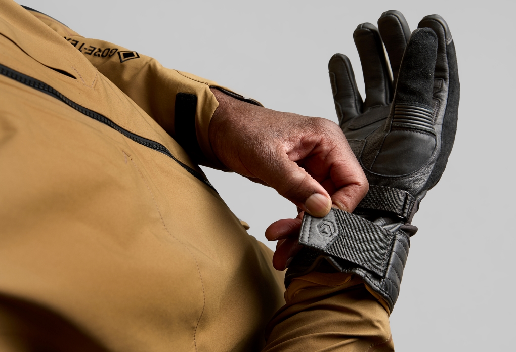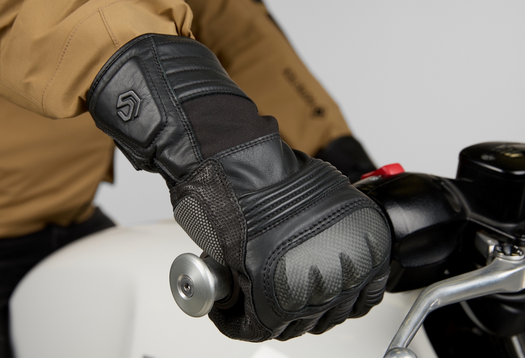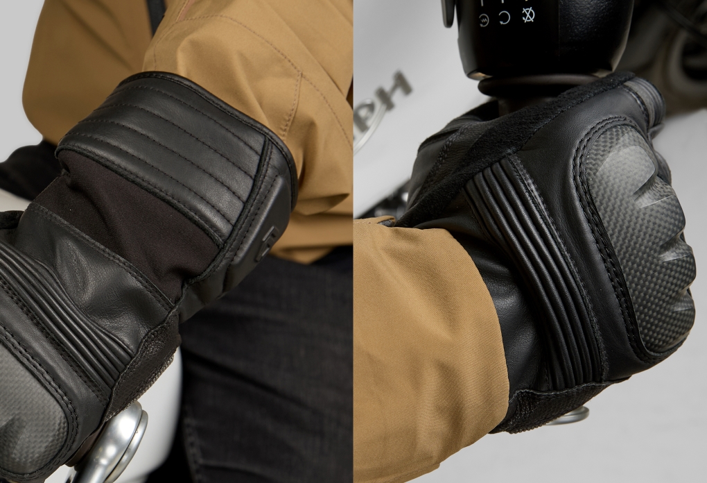 - Waterproof gauntlet-length touring / commuter glove with bold styling
