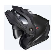 The Scorpion EXO-AT960 Modular Helmet has evolved from the super popular Scorpion EXO-AT950 Adventure Motorcycle helmet. The EXO-AT960 can be used as a full face ADV helmet with external peak visor attached, or the peak visor can be removed for a more aerodynamic touring helmet. An oversized eye port is extremely wide for greater peripheral vision and downward visibility, and the modular chin bar can be conveniently flipped up.