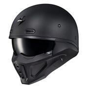 The saga continues. When the original Covert Helmet debuted, by their own admission, Scorpion “took a perfectly good half helmet and made it badder.” With the Covert X, Scorpion just slammed even more urban attitude into the package - and paired it with improved features and technology. Versatility is the Scorpion Covert X's secret weapon. The unique design offers three different riding configurations: full-face, three-quarter and half-helmet modes. The molded polycarbonate face mask, rear comfort neck sleeve, ear covers and drop down sun visors (all included) can be added or removed to drastically adjust the helmet's look. Now using Scorpion's Ultra-TCT fiberglass technology, the Covert X's shell is lighter, more rigid and offers better impact management. Redesigned front vents and revised internal air channels through the EPS flow air more effectively. The KwikWick 3 liner makes the journey more comfortable than ever before. Included are clear and dark smoke drop-down sun visors to keep you at the ready in all conditions. Run silent. Run deep.