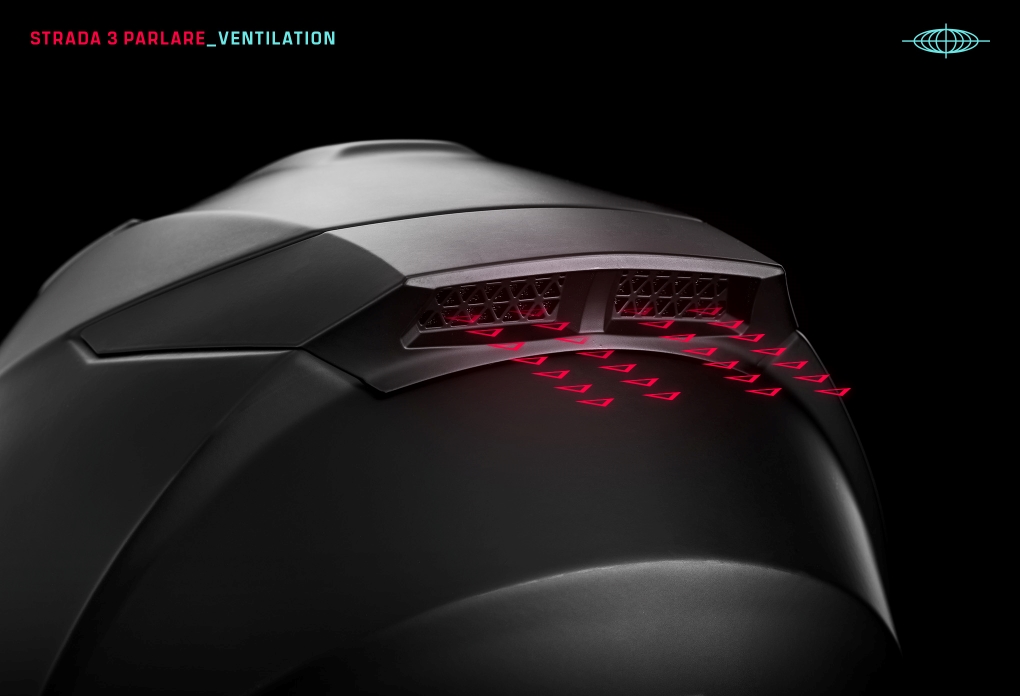 The Strada 3 Parlare features an advanced 5-layer shell design that seamlessly integrates strength and lightness. Drawing inspiration from the world of racing, its curved lower shell is engineered to minimize collarbone impact in the unfortunate event of a crash. The incorporation of enhanced aerodynamics not only improves stability but also significantly reduces wind noise, ensuring a smoother and more refined riding experience.