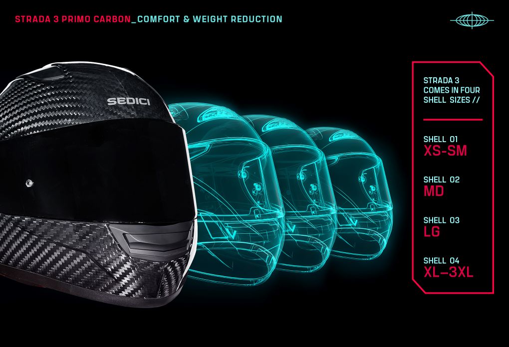 The Sedici Strada 3 Helmet revolutionizes every moto journey with cutting-edge innovation. Developed by the same dedicated team of riders and engineers behind the iconic Strada 2 series, this new iteration sets a higher standard in comfort, safety and versatile style, enhancing every aspect of its predecessor. Its thoughtfully designed carbon composite shell reduces drag and turbulence in any riding position, keeping you focused on the road ahead, regardless of your destination or riding style.