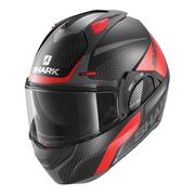 The Shark EVO GT Helmet is designed for grand touring enthusiasts who demand superior comfort and functionality. Unlike typical modular helmets with chin bars that flip up and disrupt aerodynamics, the EVO GT features a unique chin bar that rotates from front to back, mitigating wind resistance and maintaining the helmet's balance. The product includes Shark's innovative Auto up/Auto down system, which smoothly raises the face shield in tandem with the chin guard's motion, providing riders with seamless protection and visibility.