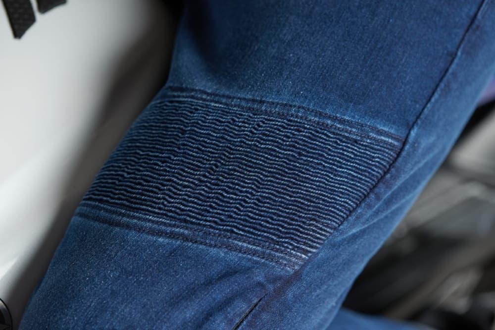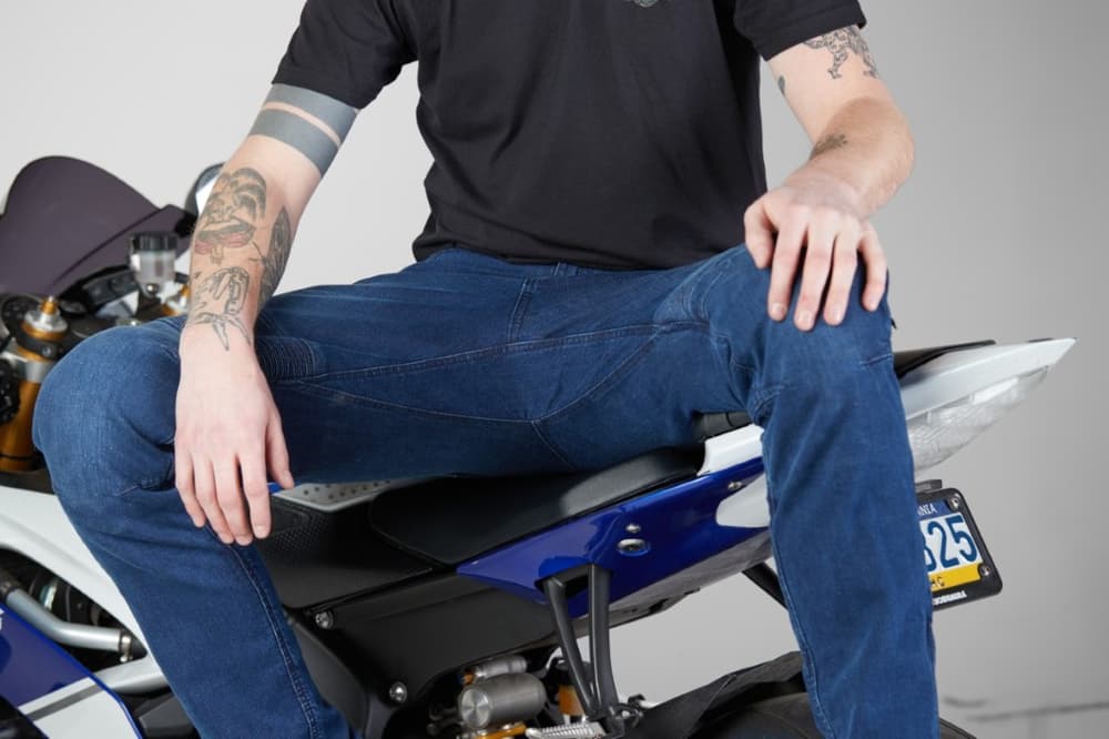 These Del Mar Riding Jeans integrate slide and impact protection while maintaining a tailored look with signature accordion flex zones and tapered fit. Constructed from a durable blend of cotton denim with spandex for added flexibility, the Del Mar Jeans are reinforced with 180gsm Aramid knit in critical impact areas for increased abrasion resistance. Triple-stitched main seams, flat rivets, and reinforced belt loops keep everything secure in the event of a spill.