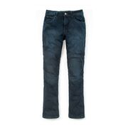 The Oakland for women are a pair of traditional style jeans, woven with stretch denim for comfort when riding. Boot cut and yet snug enough so they don't drag on the ground. Longer inseam for riding. Inside they are reinforced with heat- and tear-resistant Aramid fabric and removable CE approved knee protection.