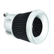 Arlen Ness has created an aggressive forward facing 90° Velocity air cleaner that has been designed with a short tube length to significantly increase airflow without sacrificing legroom and will work with lower fairings. Velocity style performance filter features a built-in inverted top to pull in air not only from the sides of the filter but also the front, for more performance gaining airflow.
