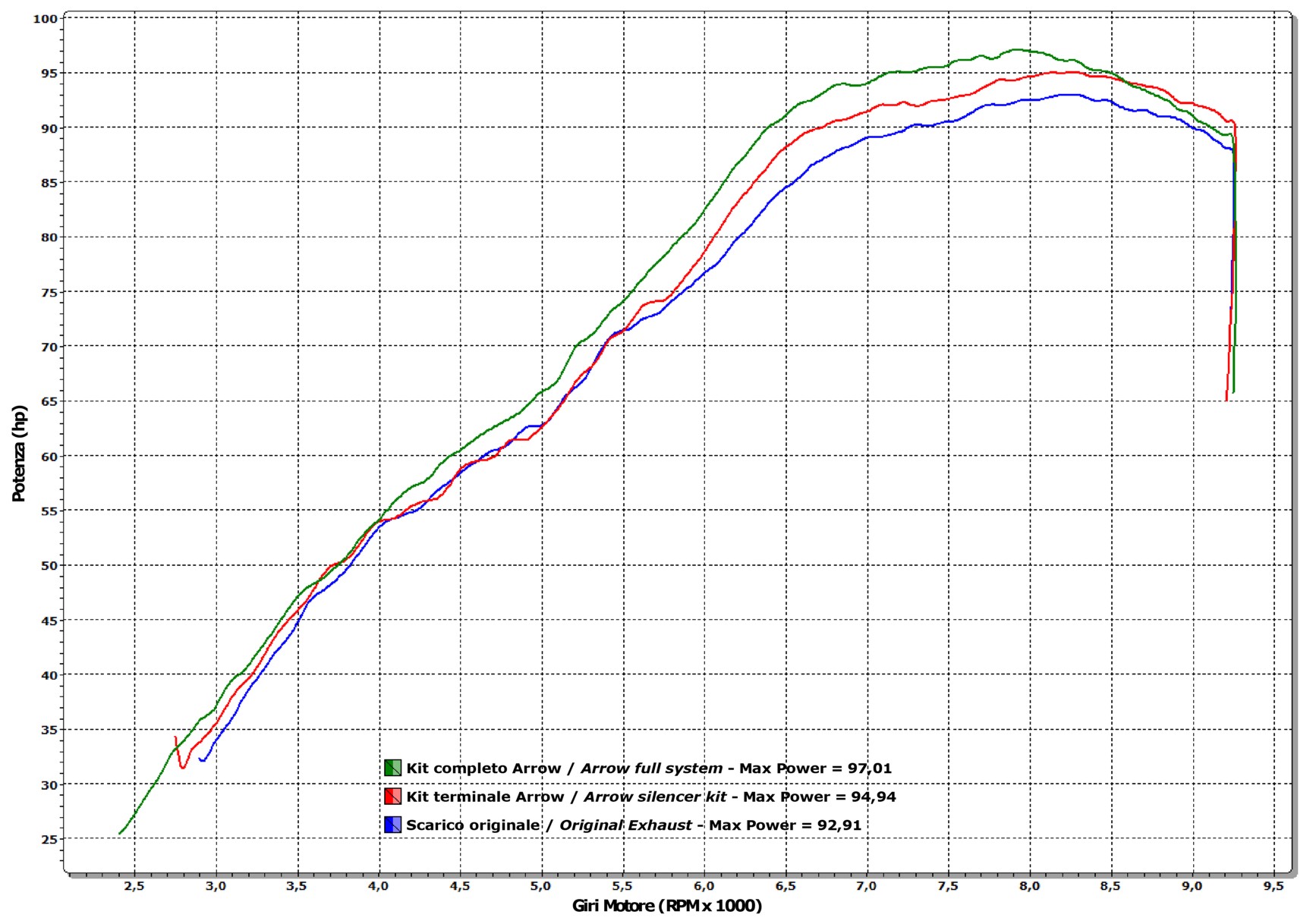 The Arrow Maxi Race-Tech Slip-On Exhaust uses similar design features of the Race-Tech slip-on exhaust, but with a larger muffler. The muffler size makes this option ideal for larger displacement engines and single or twin cylinder engines. The Arrow Maxi Race-Tech Slip-On Exhaust is also a good choice for regions where there are stricter noise requirements.