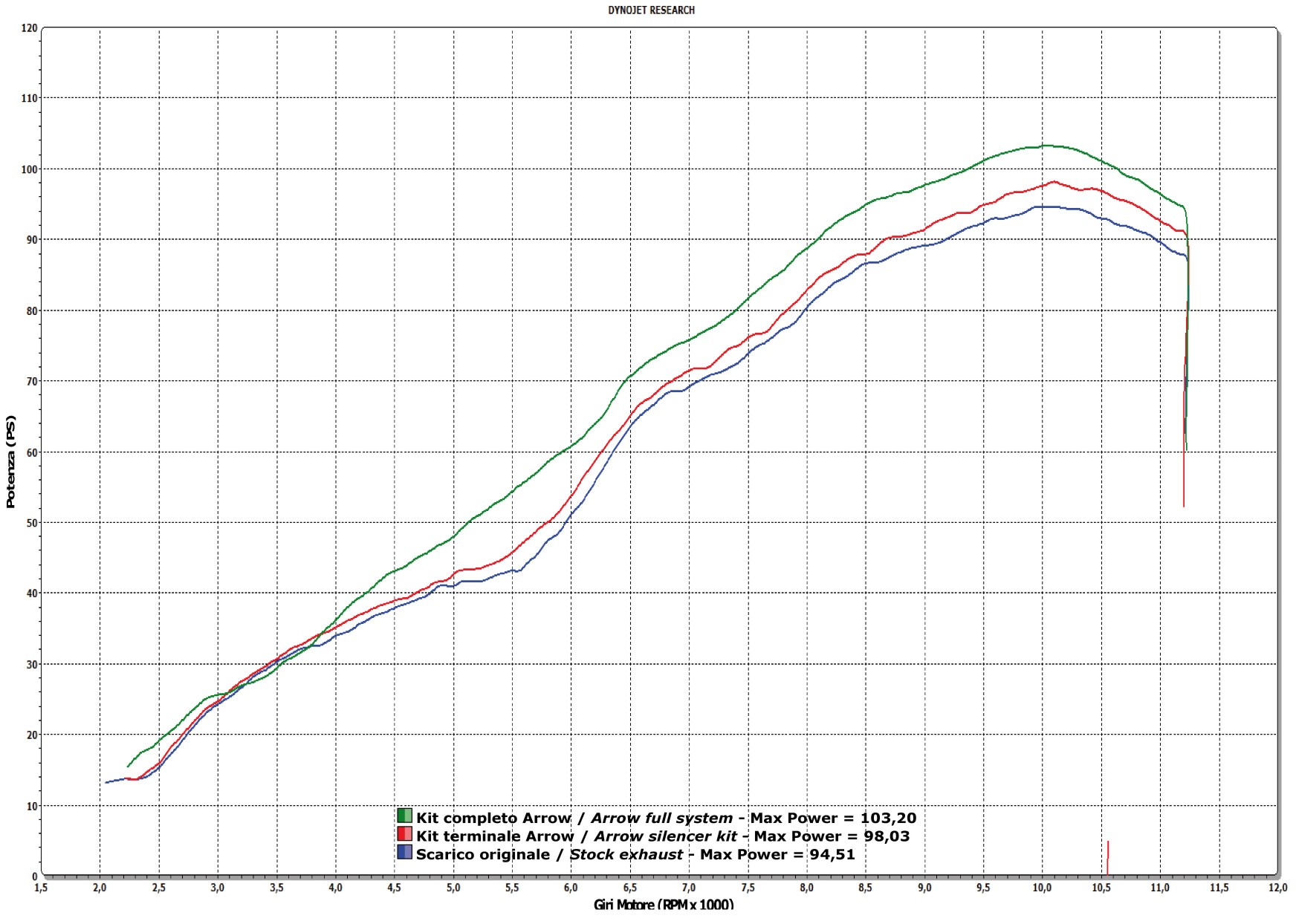 The Arrow Race-Tech Slip-On Exhaust uses a diamond shaped muffler to reduce the outside dimensions while maintaining internal proportions. This allows the compact exhaust to sufficiently dampen noise and improve exhaust flow. The result is better performance and lighter weight compared to factory exhausts.