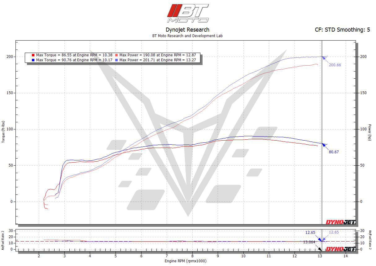 - On average, gains of 7-14HP from the midrange and up were found over the baseline on a typical exhaust/filter bike with 93 octane fuel in the tank (Larger gains with race fuel)