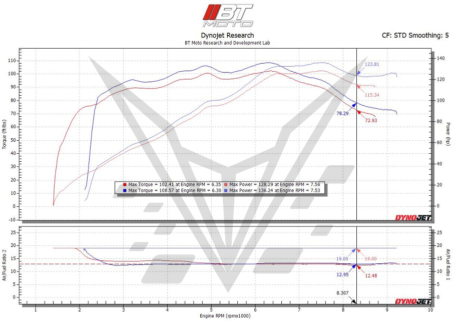 - Power and torque gains due to unrestricted throttle and removal of limiters, in each gear