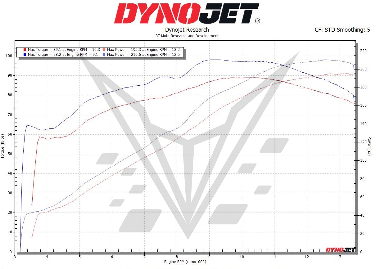 Note: Air/fuel adjustment not required however, BT Moto Stage 1 Flash recommended for advertised results.