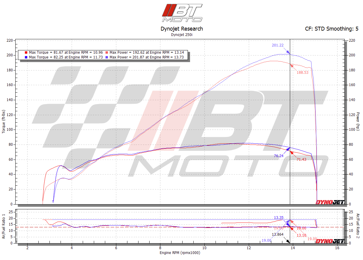 Note: Air/fuel adjustment not required however, BT Moto Stage 1 Flash recommended for advertised results.