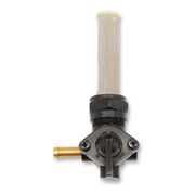 This chrome 22mm petcock includes a three-position control lever with reserve. It has a 5/16" barbed spigot and a high-flow fuel filter screen.