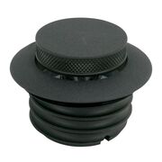 Billet aluminum construction that is available in a polished chrome or wrinkle black finish. The fit is nearly flush when closed and then it opens easily with just a quarter-turn of the center of cap.