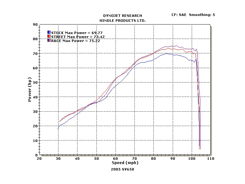 Hindle Evolution Exhaust System Suzuki SV650 / SV650S 2003-2009 Dyno