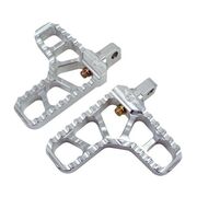 Super strong all billet aluminum makes up these unique, lightweight one piece construction pegs that will be sure to turn heads and add to performance feel. The comfortable serrated foot surface area gives you a wider area for your feet and provides a good bite onto the bottom of your shoe. Full 360 degree footpeg rotation makes these footpegs perfect for any application. Footpegs have a pitch adjustment screw that enables you to change the angle of the peg in order to adjust it to a level riding position so the pegs don't appear to sag over time.