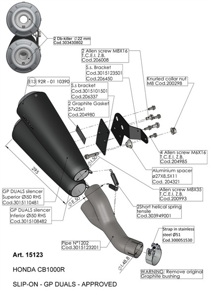 LeoVince GP Dual Slip-On Exhaust Honda CB1000R 2018-2019 Schematic