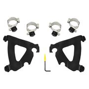 Revolutionary tool-less Trigger-Lock hardware features an innovative lockdown system that allows one to quickly and easily install and remove a Memphis Shades Road Warrior Fairing without tools. A pair of latches lock the Fairing down until the spring-loaded "trigger locks" are intentionally disengaged, allowing simple removal from the fork clamps. Hardware is a combination of stainless, aluminum, and electrocoated parts for corrosion resistance and long-lasting good looks. Kits are custom fit for your Sportster for a no-hassle install.