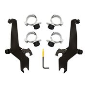The Memphis Shades Trigger-Lock hardware presents a groundbreaking solution for effortless installation and removal of windshields without the need for tools. The design features a unique locking mechanism where dual latches secure the windshield in place, but can easily be released with the spring-activated "trigger locks." This allows for swift and straightforward removal. The hardware's adjustability ensures optimal windshield positioning. Made from a mix of stainless steel, aluminum, and electrocoated components, the hardware resists corrosion and maintains its aesthetic appeal over time. Tailored to fit each specific motorcycle model, this USA-made kit promises a straightforward installation process.