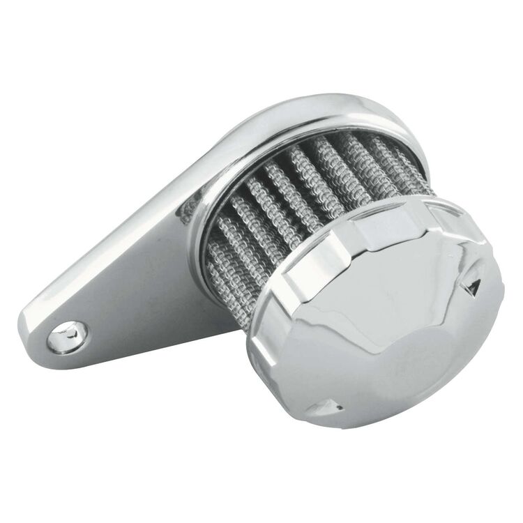 This assembly has a one-piece filter attached to chrome cover. This breather includes a chrome-plated zinc die cast mounting base.