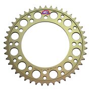 Renthal ultralight rear chainwheels are roughly one third the weight of a comparably-sized steel sprockets. A proprietary blend of 7075 T6 aluminium alloy coupled with a special hardwearing surface treatment ensures Renthal sprockets can withstand the rigors of track use.