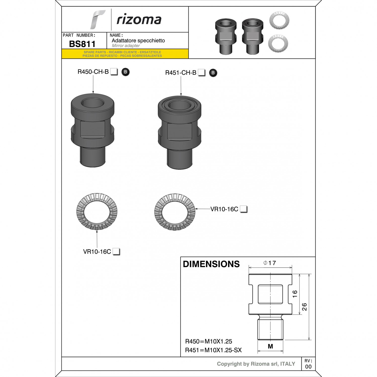 Rizoma One Mirror Adapter Schematic