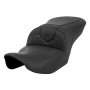 The Roadsofa seat is meticulously designed for long-distance touring enthusiasts who prioritize all-day comfort. It features Gelcore Technology for both the rider and passenger, which is unique to Saddlemen and provides a smooth, therapeutic ride by managing energy through a proprietary mechanical process. Unlike standard seats, which typically rest on the cover, the split-cushion lumbar area is engineered for riders to sit into the Gelcore, enhancing comfort over extended periods on the road. Crafted from Saddlehyde, this seat material offers an optimal blend of aesthetics, rider comfort, and long-lasting durability. With its leather-like grain and softness, Saddlehyde incorporates a level of stretch that boosts the effectiveness of the gel and foam elements for added comfort. Saddlemen's progressive approach to comfort is also evident in their Progressive Density Foam, the result of in-depth research and practical experience. The precision-engineered chemical composition ensures a perfect equilibrium between firm support and plush compliance. Encased in a water-resistant skin that reinforces the seat's endurance, the foam features varied cell sizes and types, all contributing to the Roadsofa's reputation as the ultimate seat for the long haul.