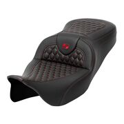 The Saddlemen Road Sofa Honeycomb HC elevates comfort during long journeys with its sophisticated seat design. The product features a unique split cushion approach that divides lumbar support from the seating area, effectively eliminating pressure on the tailbone and preventing hot spots. The inclusion of SaddleGel enhances the legendary comfort this seat is known for. Both the rider and passenger can enjoy the large, smooth, and wide saddles, which have been meticulously refined through extensive testing to ensure mile after mile of pleasurable riding. This seat is a testament to the seamless integration of advanced technology, premium materials, and thoughtful design for sustained comfort control. It is also embellished with a classic pattern that blends traditional aesthetics with contemporary geometric shapes for an appealing look.