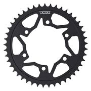 Vortex Steel Rear Sprockets are the perfect balance of weight, strength and style. They comprise of hardened carbon steel and a electro-plated satin finish to resist corrosion. Their hardened teeth ensure that the sprocket will hold up to many miles without affecting its strength.