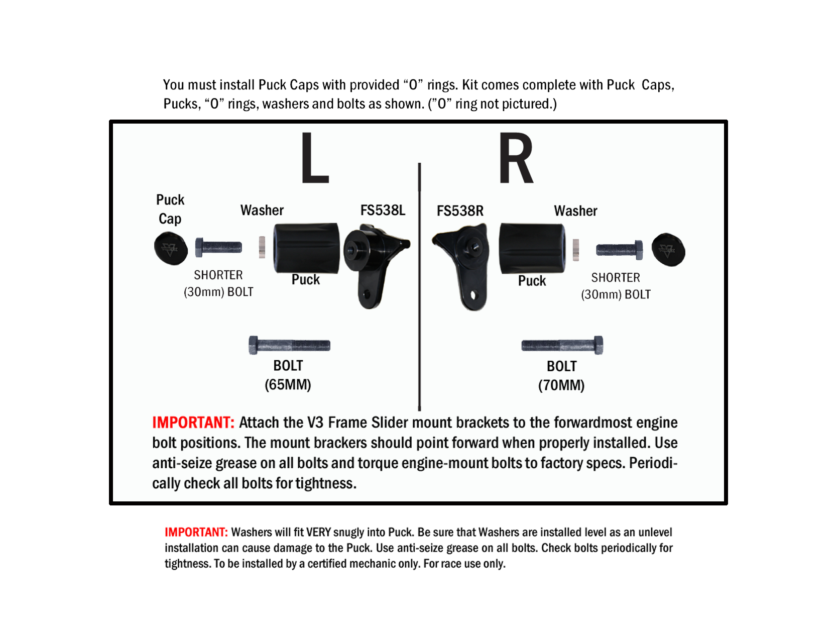 - V3 Frame Slider Kit comes complete with bases, pucks, bolts and puck caps
