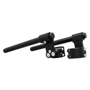 Woodcraft Clip Ons are designed specifically to make installation, service and removal a snap. All kits include 7/8 diameter, 12" length black bars that are easily adjustable to whatever width you desire. These clipons are available with a one, two or three inch rise over a conventional race clipon.
