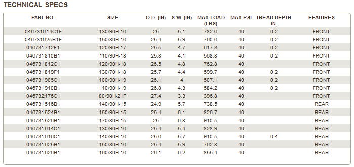 Product Style Front / 130/90-16 | Item # 157486 | Store SKU | Manufacturer Product # 046731614C1F | Availability Available: Ships next business day |
